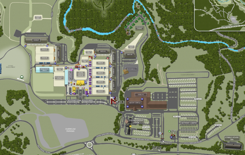 All NHS classes will take place in the Indoor Complex, which is located just behind the Show Office. The Indoor Complex also includes a warm-up area and a general riding area. Competitors and trainers will also have access to three outdoor rings and lunging areas.